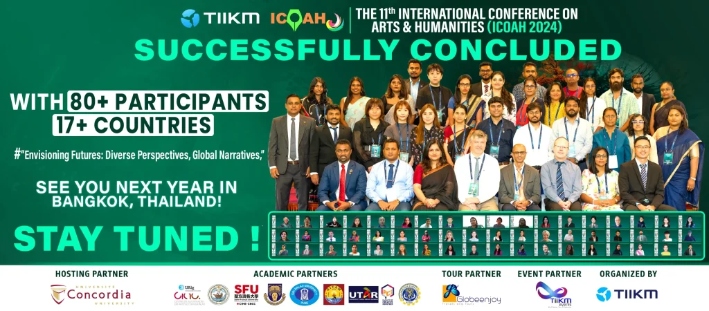 The 11th International Conference on Arts and Humanities 2024 (ICOAH 2024) provides a dynamic platform for scholars, researchers, and practitioners to explore the diverse dimensions of arts and humanities. Under the theme “Envisioning Futures: Diverse Perspectives, Global Narratives,” the conference aims to foster critical dialogue and innovative thinking that transcends cultural, geographical, and disciplinary boundaries. Through interactive sessions and interdisciplinary collaboration, ICOAH 2024 seeks to inspire meaningful contributions, promote inclusivity, and advance global cultural heritage and knowledge.